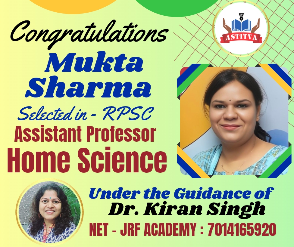 Congratulations to Mukta Sharma, Selected in RP...