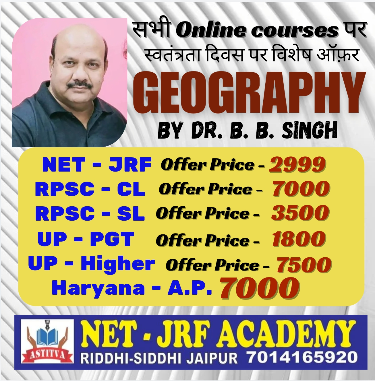 Geography विषय के सभी Online Course पर, स्वतंत्रता दिवस के अवसर पर तीन दोनों का विशेष ऑफ़र आरंभ हो रहा है। ऑफर 14 अगस्त से आरंभ होकर 16 अगस्त की रात्रि को समाप्त होगा। अवसर का लाभ उठाएं और Play Store से अभी Astitva Application download करें । अधिक जानकारी के लिए 7014165920 पर whatsapp या Call करें। ..